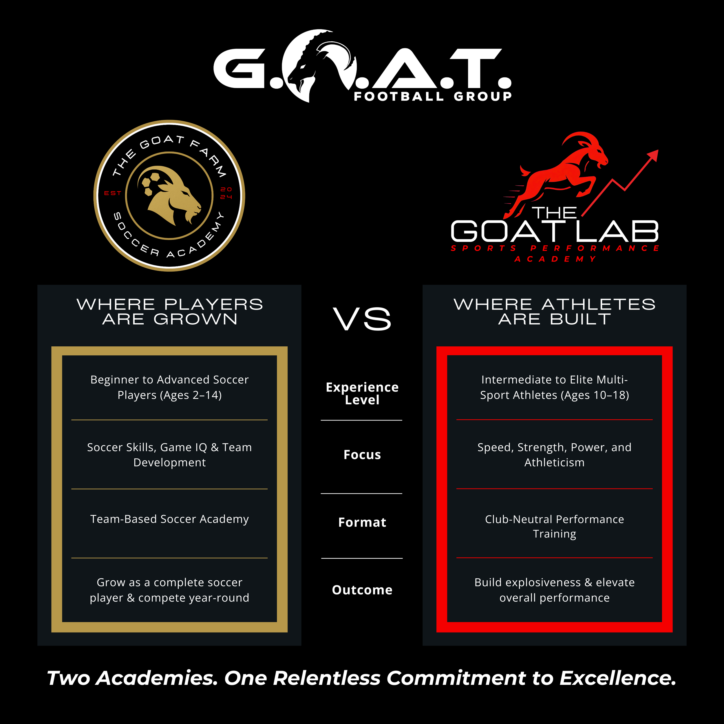 TWO ACADEMIES. ONE RELENTLESS COMMITMENT TO EXCELLENCE VISIT THE GOAT FARM WEBSITE VISIT THE GOAT LAB WEBSITE